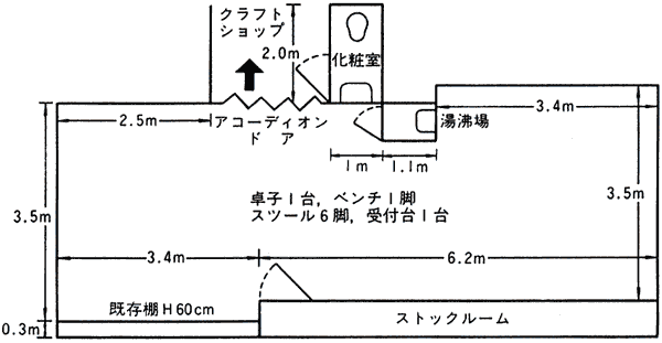 クラフトショップを通り抜けての奥になりますので、仕切られた空間ながらも歩道からまっすぐ入りやすいという絶妙な位置にあり、ガラス張りのショーウィンドウには作品を飾って頂けますので、歩道を歩いている方々からも、とても目立ちます。